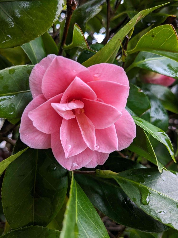 庭では老木椿の花が咲き始めているよ✌️🥰🎶