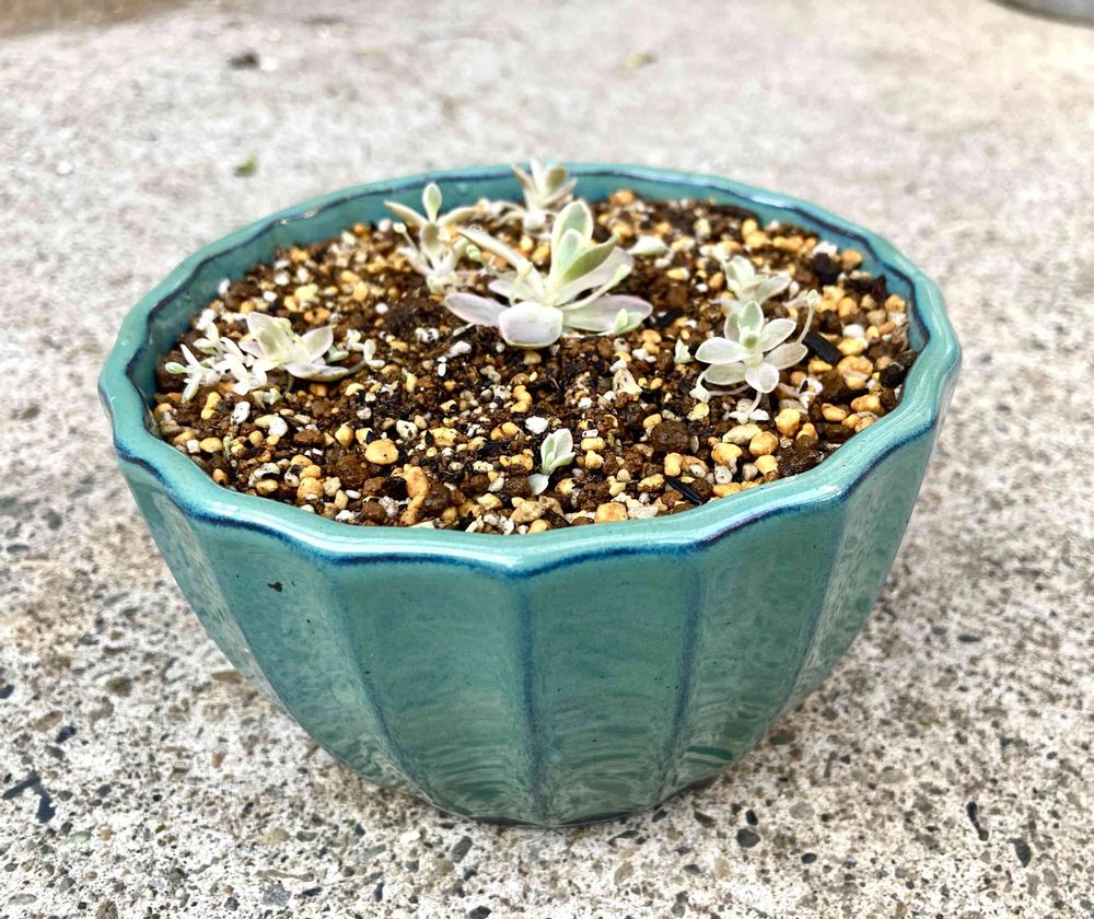 まだ小さい苗ですが、これから増えるだろうと思われるので、4号の盆栽鉢に植えてみました。
