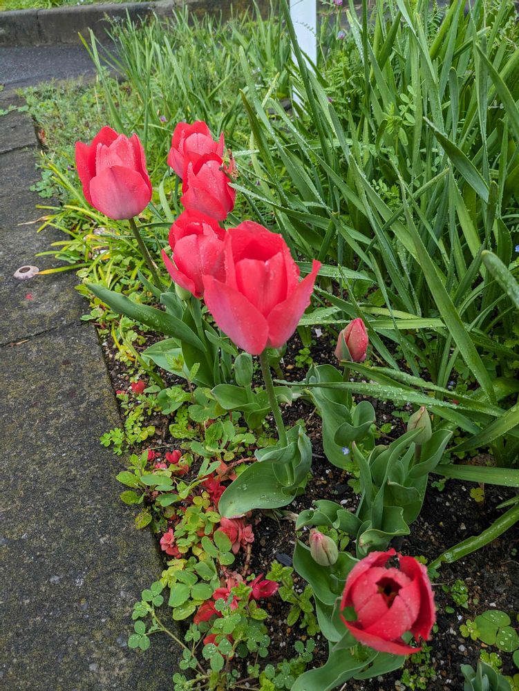 病院の帰り道信号🚥待ちの交差点に並んで咲いている🌷🌷🌷
