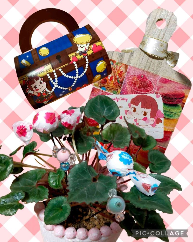 シクラメンのお花がなくなって淋しいから、可愛い🍬ピックを飾ると華やかになりました〜♪