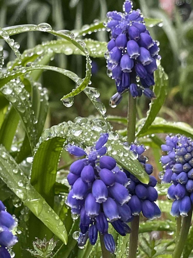ムスカリが雨粒を纏って💙🌿