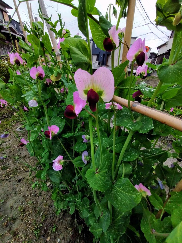畑になんてkawaiiの…🩷💜😘💜🩷🌿…サヤエンドウ🫛🫛🫛のお花…美しい…💜🩷🌿