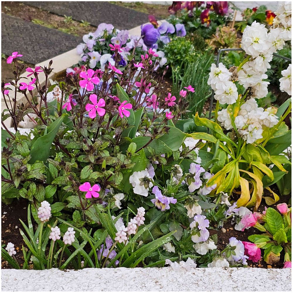 1枚目) ムスカリのピンクサンライズサンの写真📸を撮るつもりでスマホ📱を構えましたが、他のお花サン達も可愛く咲いていたので一緒にパシャ📸