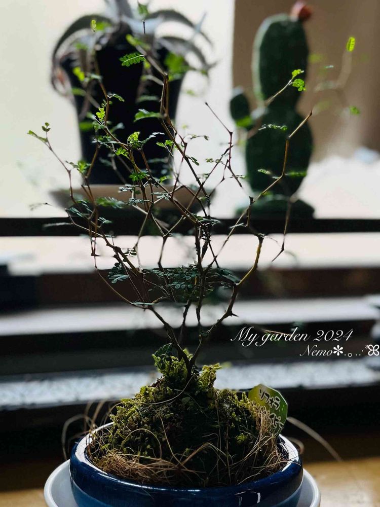 3年目で油断してダメにしてしまい、苔玉で再挑戦、もう少ししたら土に植えたい、小さな葉っぱ🌿が可愛い💕