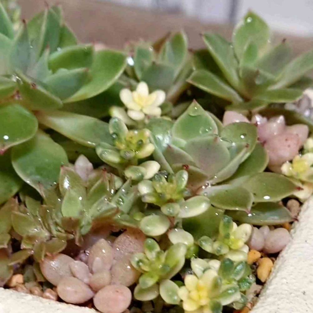 葉挿しのパンジー🌵と斑入りタイトゴメ、姫シュウレイの寄せたもの💚💛💗