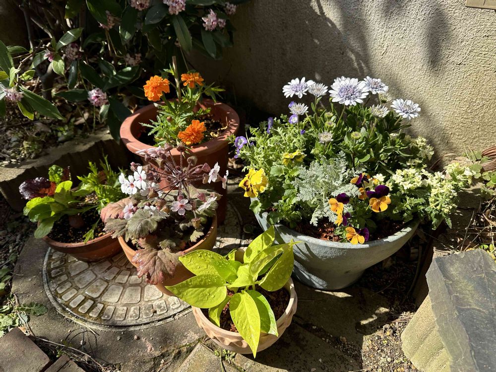 暖かくなってきたので久しぶりに寄せ鉢作りました🌼(写真①)