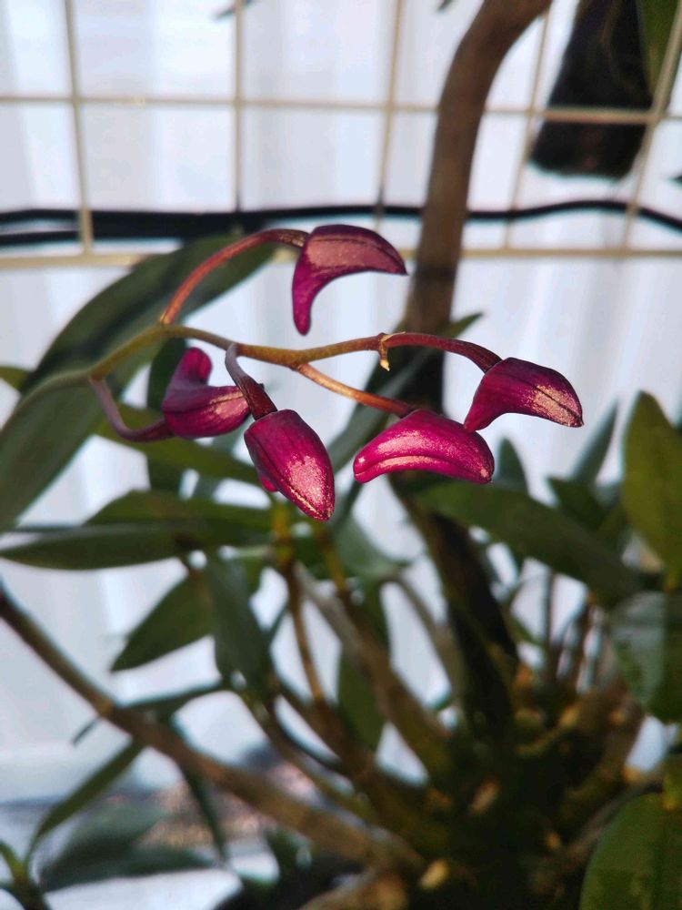 <地道投稿>寒さ戻った今日、冷たい雨降り始めました。1流木仕立キンギアナム(ベリー.オダ)昨年は数ヶ所に花咲かせてもらいました。今年はこの一ヶ所大切に育てます。2「セロジネ」花芽ぐんと(昨年1→今年2)伸ばし、今日は水やりしました。3「シンビジウム(バターボール)」我が家にあるシンビジウムで、昨年もこの一鉢だけ咲きました。4「シンビジウム(アイスキャスケート」葉芽🌱🙅花芽💠😂花芽🙏であってほしいと願ってます。
