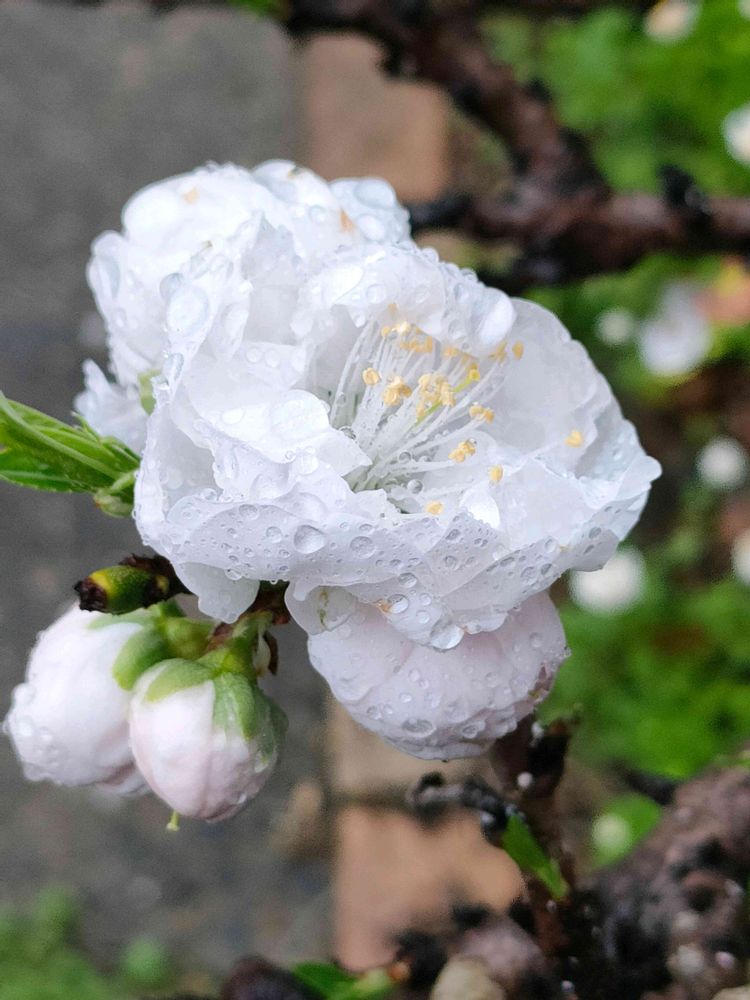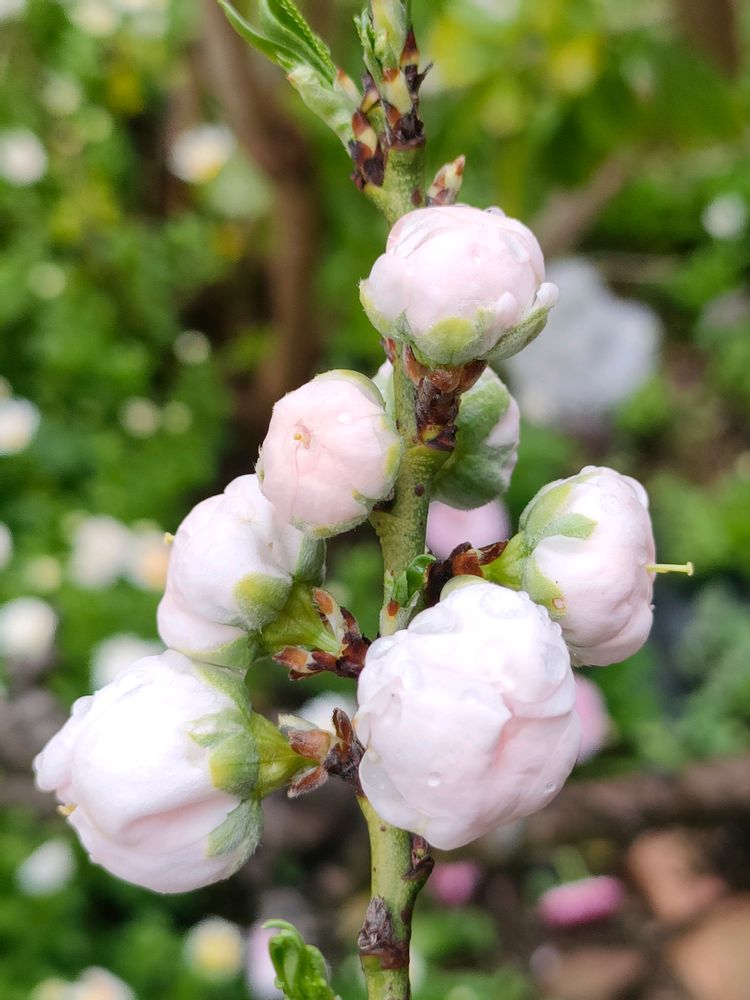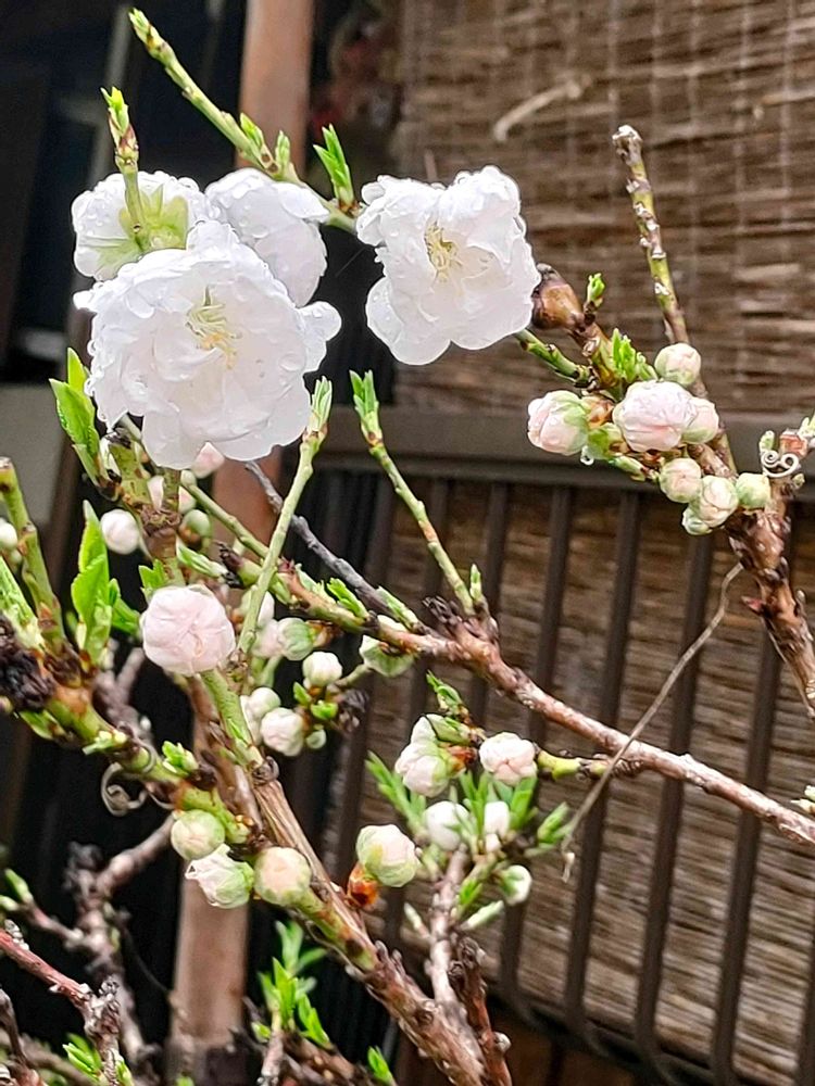 桃の花は花桃の花はピンク色ですが白桃🍑のお花は蕾の時はピンク色ですがお花が咲いたら真っ白🤍のお花です☺️