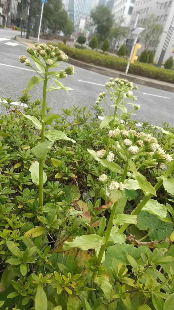 中央分離帯のツツジからハルジオン??何か咲いてます、、、