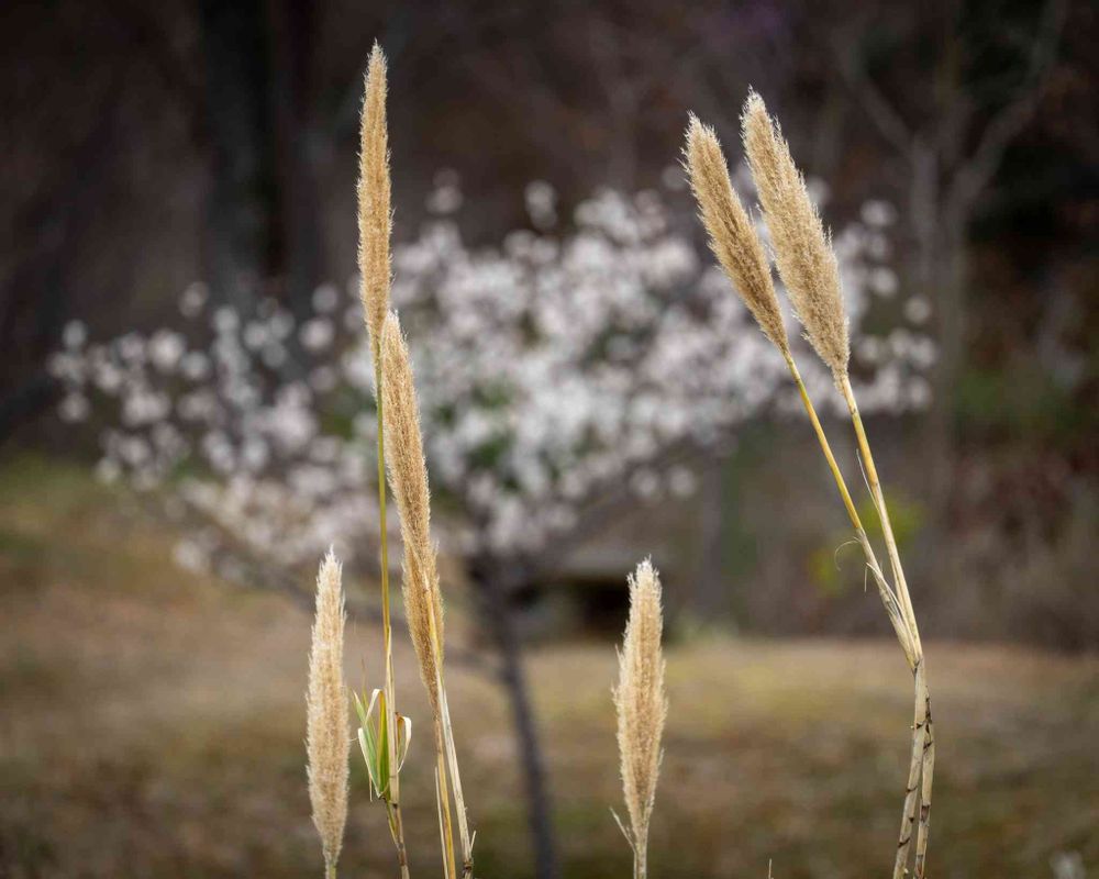 ダンチク(暖竹)が3mくらいの背丈で、白梅を背景にして元気に輝いていました。ちなみにダンチクは初見でした。2024.03.19.撮影