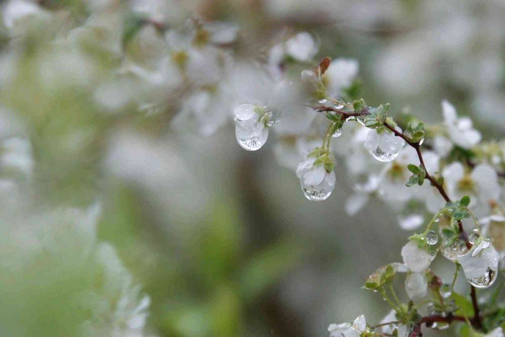うんうん、ユキヤナギさん、雫の中に閉じ込められてます💧🎶