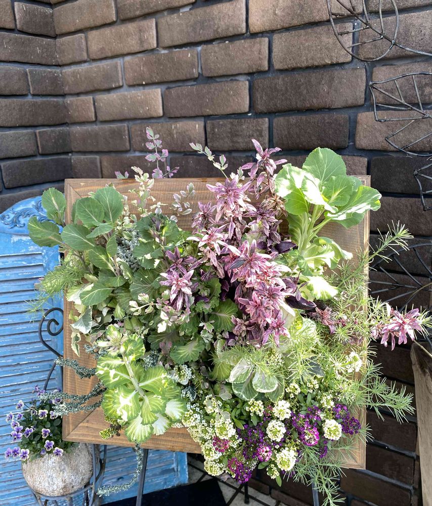 葉牡丹さんカットしたらロータスコットンキャデイさんのびのび出来たんだね〜いつ見てもカッコイイ額縁寄せです✨🌿