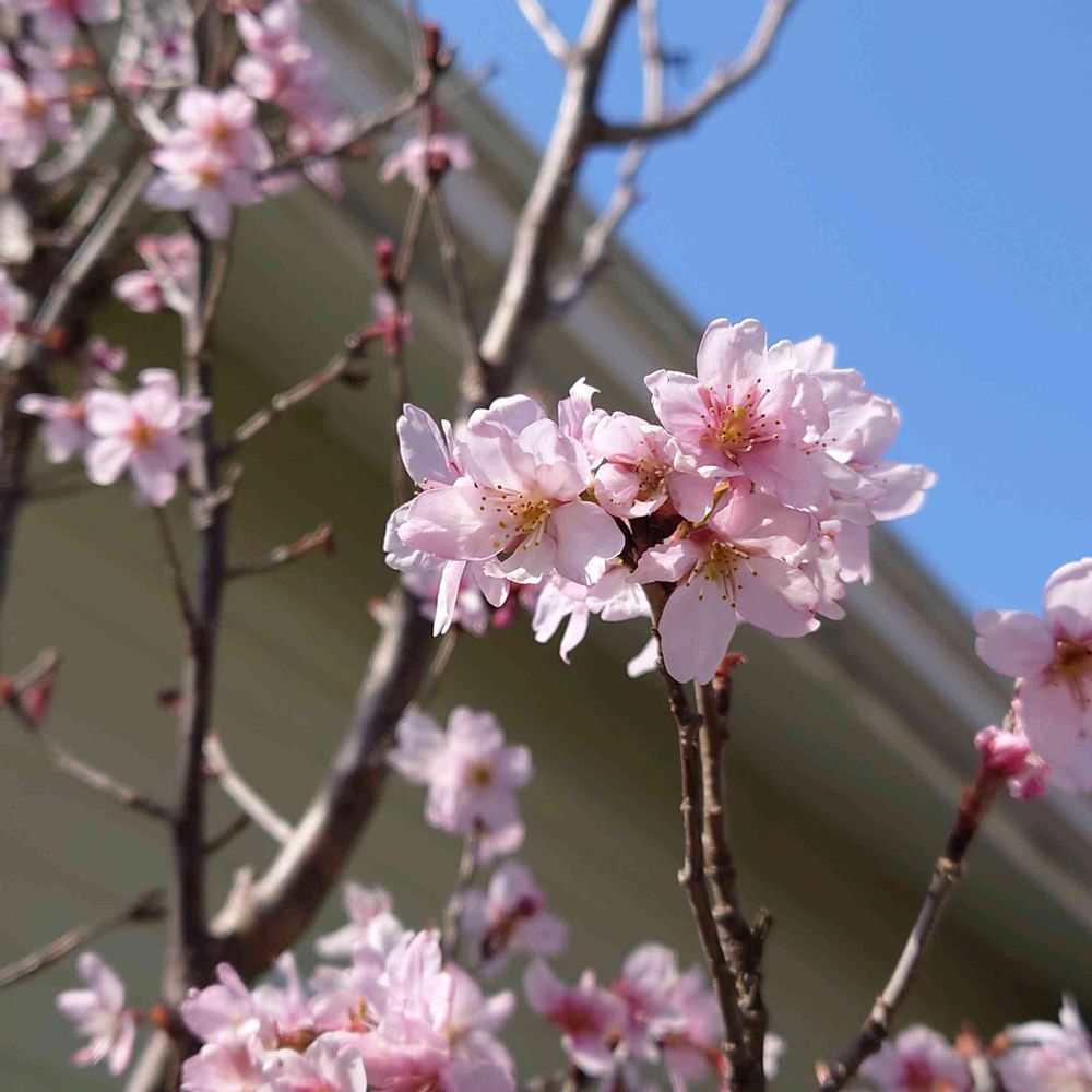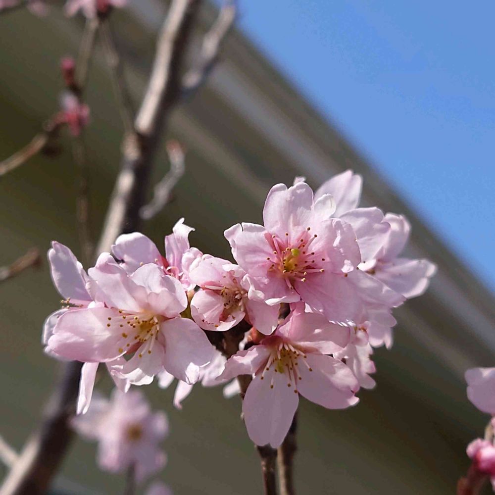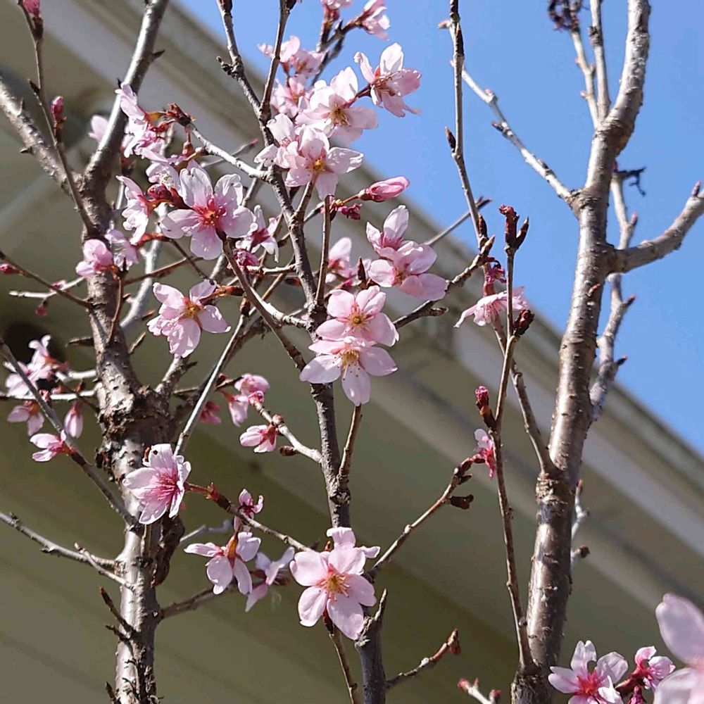 裏庭で細々と咲いてます〜あんまり大きくならない桜🌸なのが良いよね〜モコモコちゃんとこにもあるのかな?