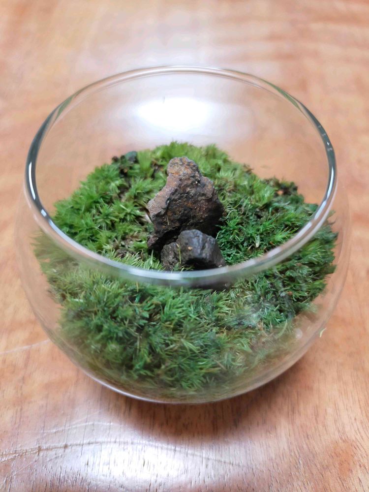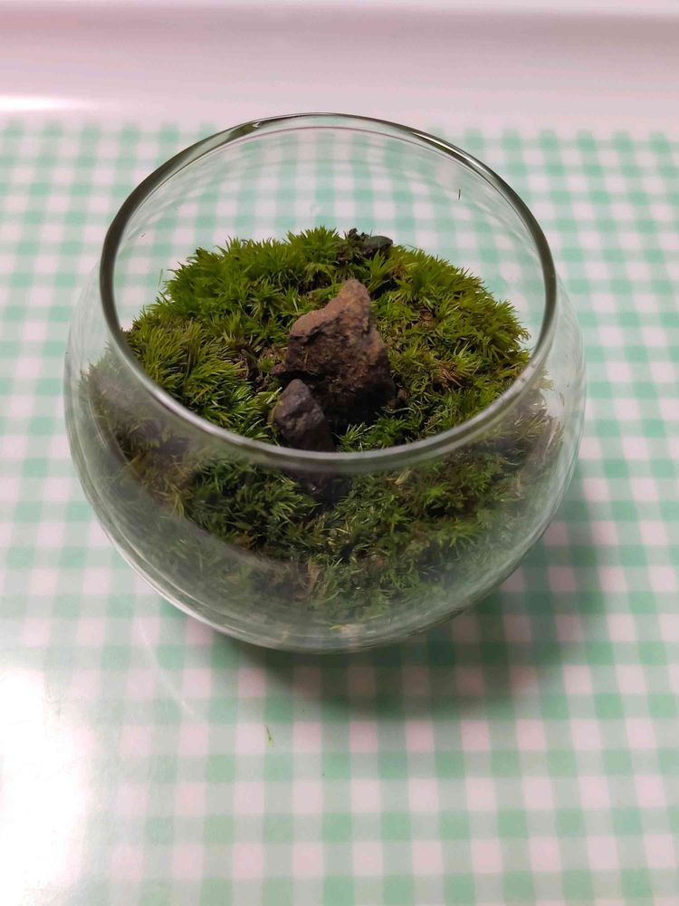そうなんです。小さな丸いビンまで入っていて、あっという間に苔テラリウムができました。