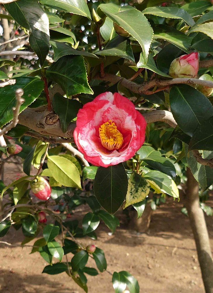 きれいな絞り柄ですね🧐😀 ツバキもまだまだがんばっています💪(農業試験場内にて)