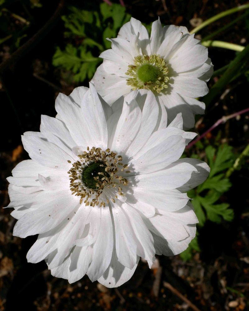 ①「八重咲きアネモネ、ブルー」と「一重咲きアネモネ・デ・カーン、ブルー」。