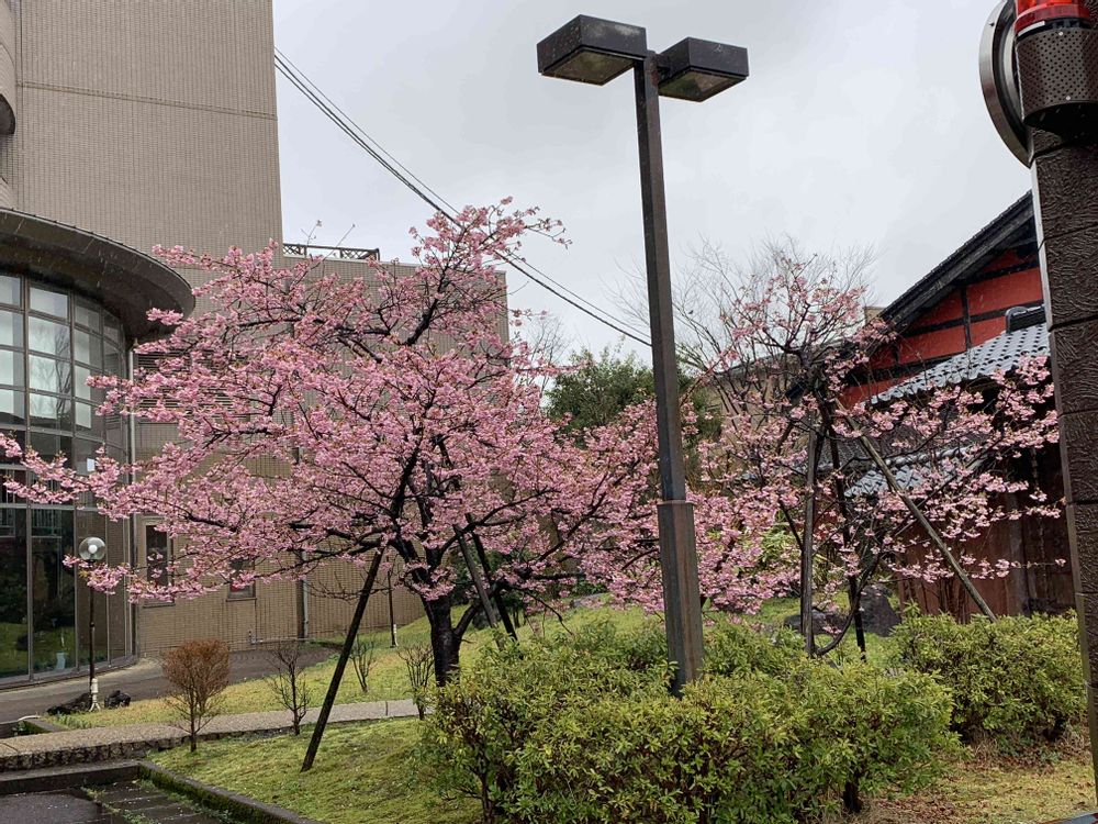 旧ホテルに咲く、大好きな河津桜😻💞