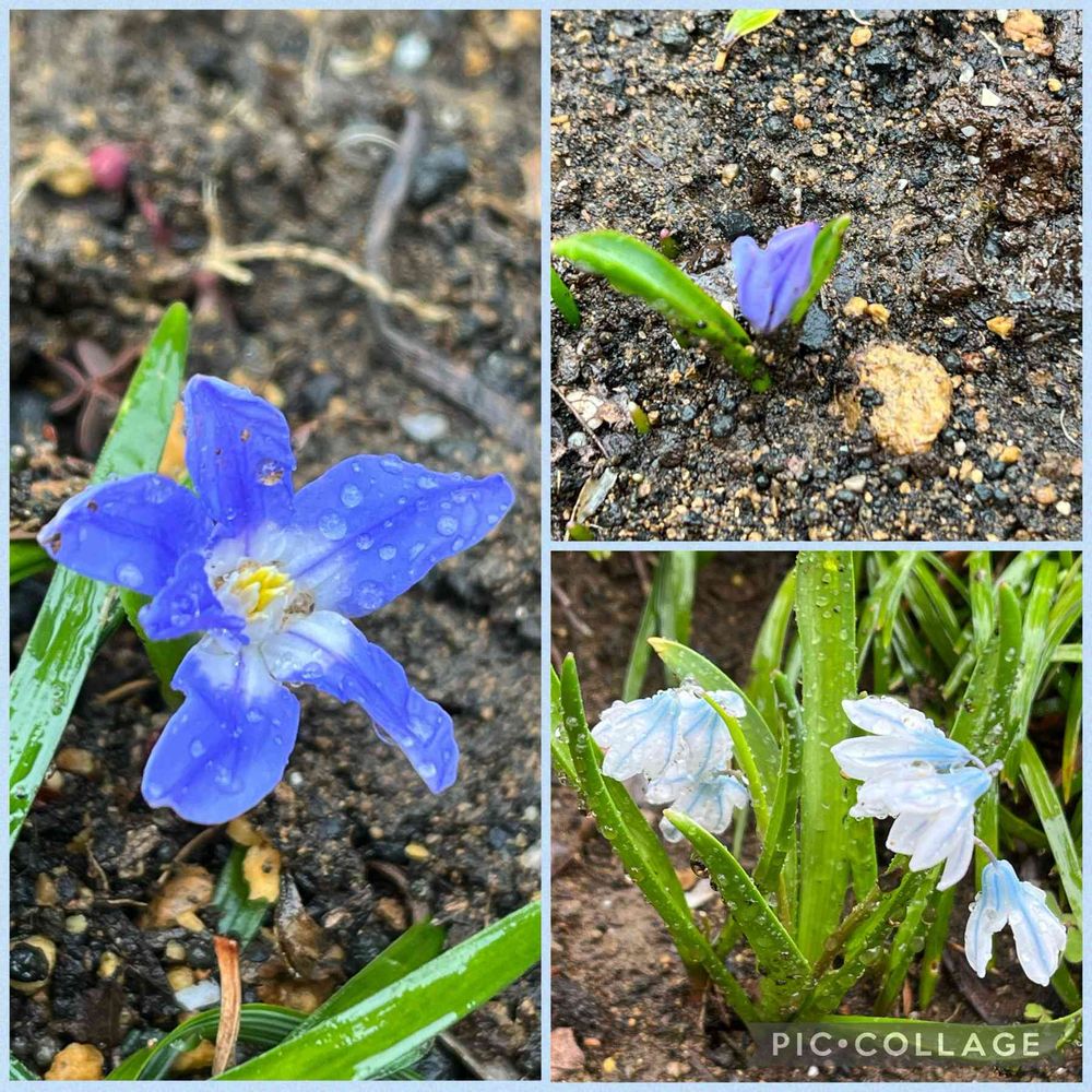 昨日の雨中のチオノドクサとプスキニア🩵🩵🩵💙