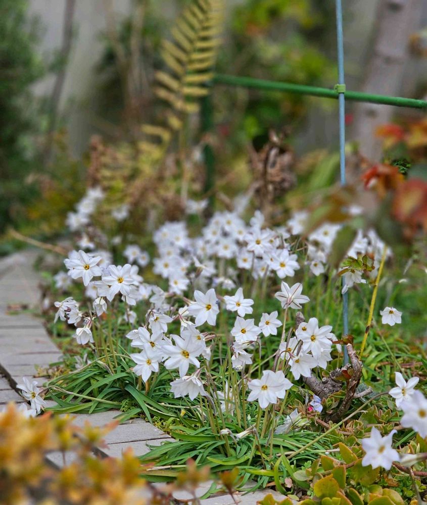 白またはブルーなどの星型のお花を咲かせ 茎や葉っぱを傷つけるとニラっぽい香りがするところからハナニラの名があります。