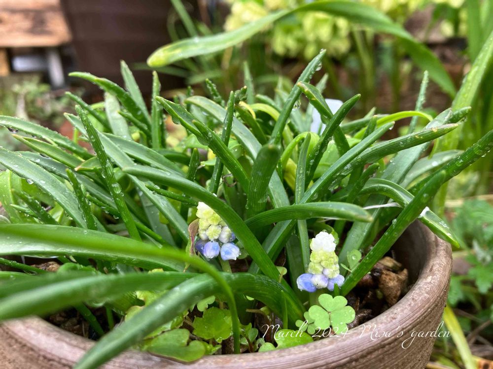 3枚目は、肥料も植え替えもしなかったムスカリさんの鉢😂水遣りしてたら、微かにカタバミの間から見えたの🤣次回はちゃんとするわ🤣