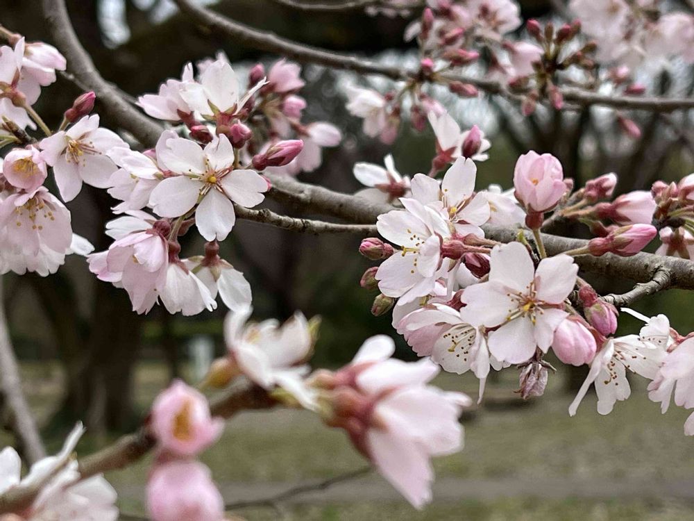 園から外に出た堤防の桜も🌸開花し始めていて、花見客も何人か😊