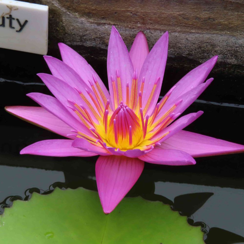 今晩は🤭♪バナナワニ園温室の睡蓮🪷 Nymphaea ‘American Beauty’(アメリカンビューティー)
