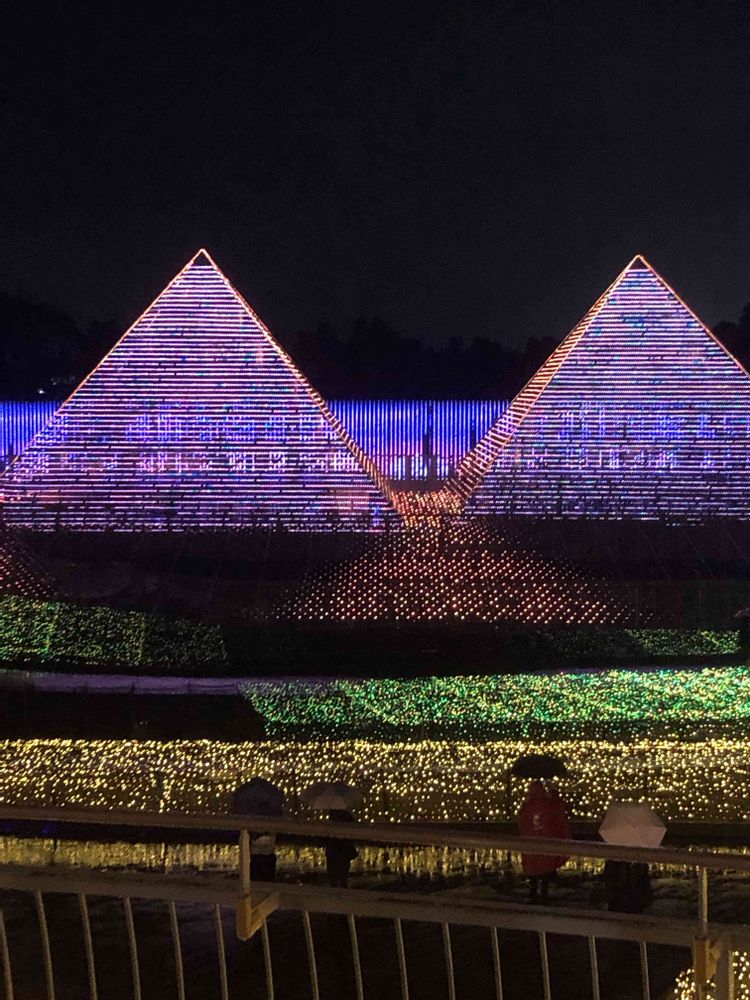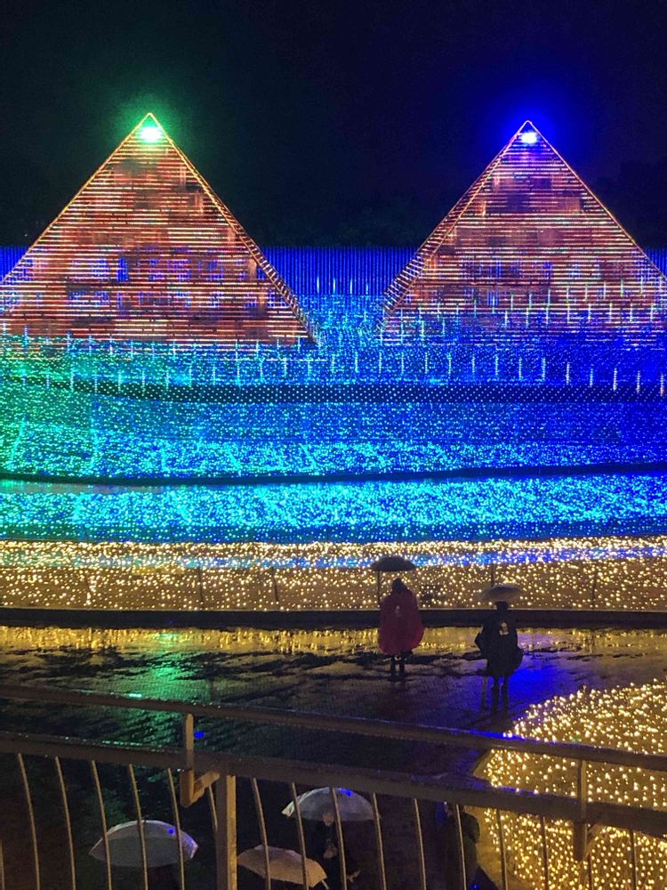 雨降りの中、なばなの里にて、夜のイルミネーションをパチリ!🌃☔️🌲🌳🏜️🐪😄✌️