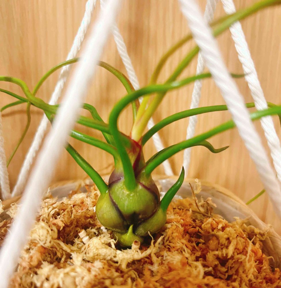 “球根”という和名を持つ、この怪しい壺型の姿に独特の葉のうねりが美しい🤩