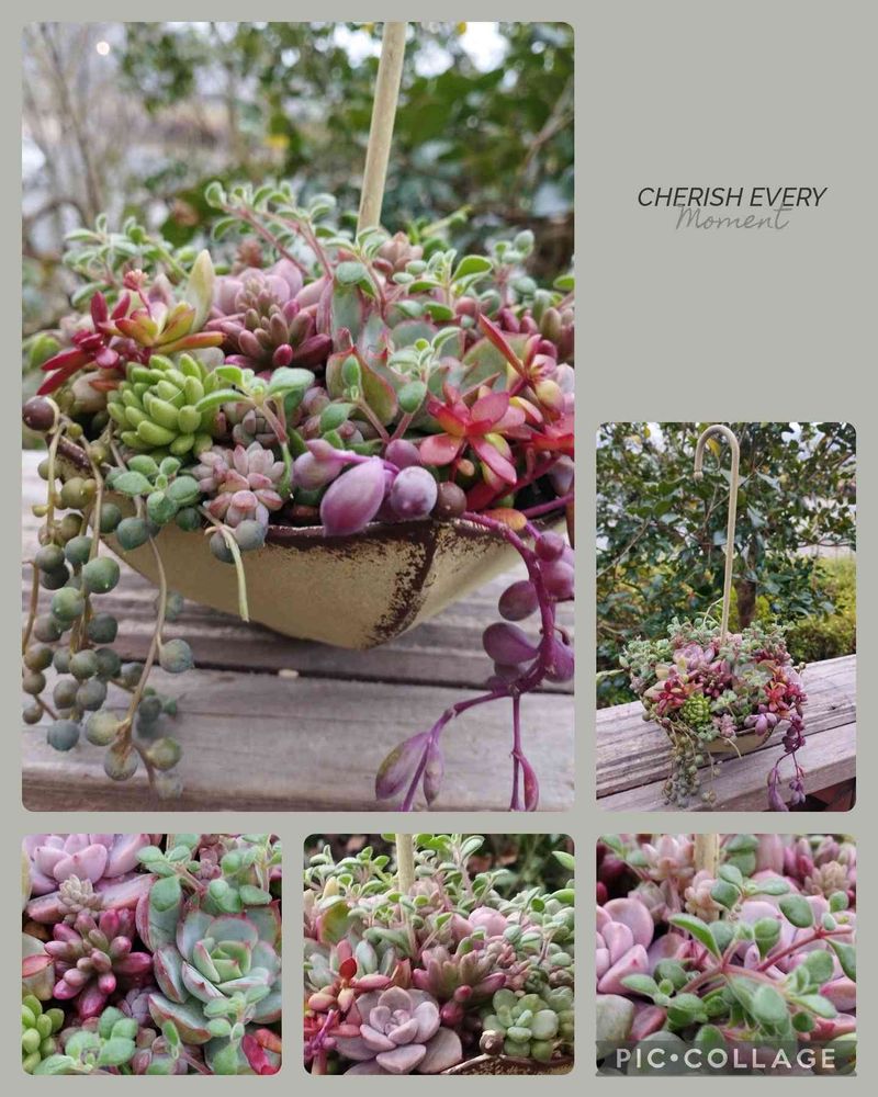 1枚目ミールンさんから頂いてたアンブレラの鉢に寄せ植えしました(*^^*)