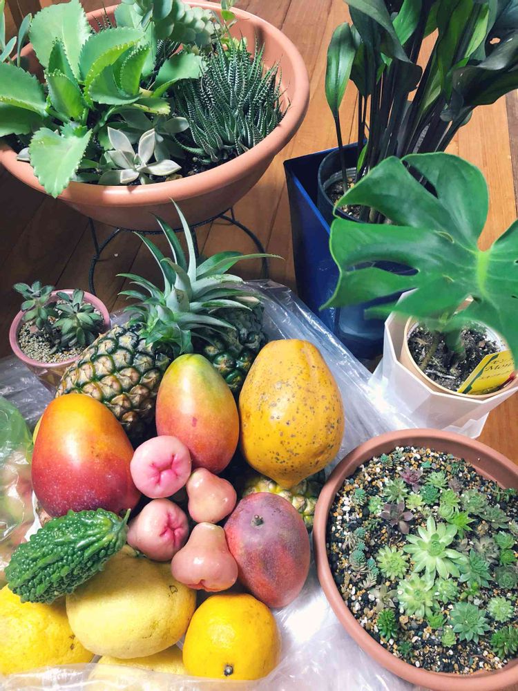 食べて〜と🍍、マンゴー、フルーツパパイヤ、レンブ、🍊、ゴーヤー