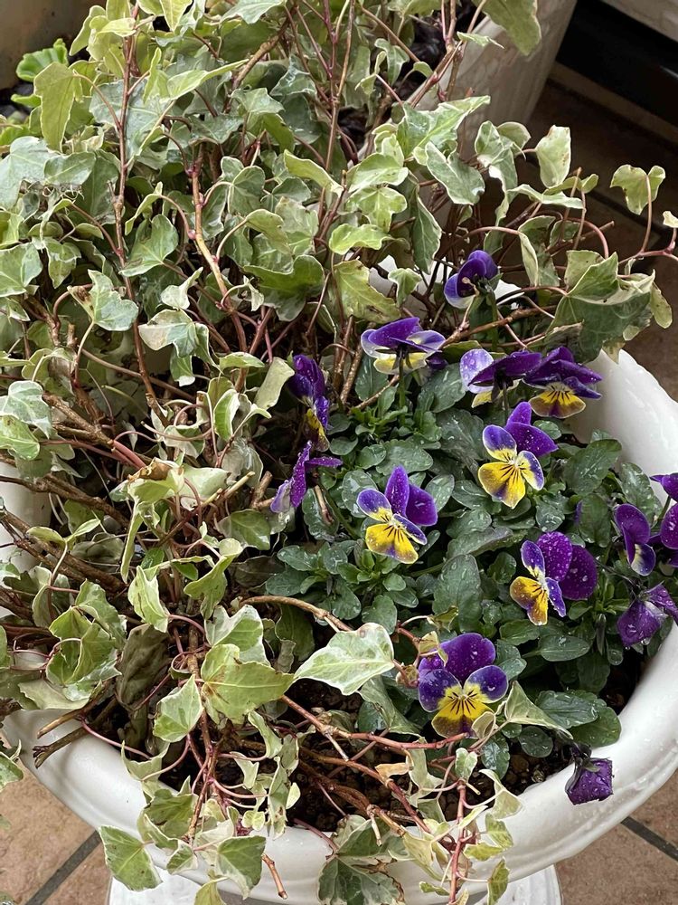 地植えから鉢植えにしてこぼれ種のビオラを隙間に植えました