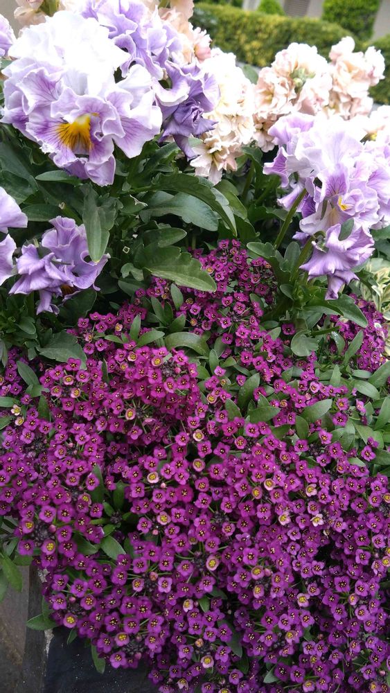 これはウチのマンションの管理棟前にある、大きな丸太形のプランターの寄せ植えです。