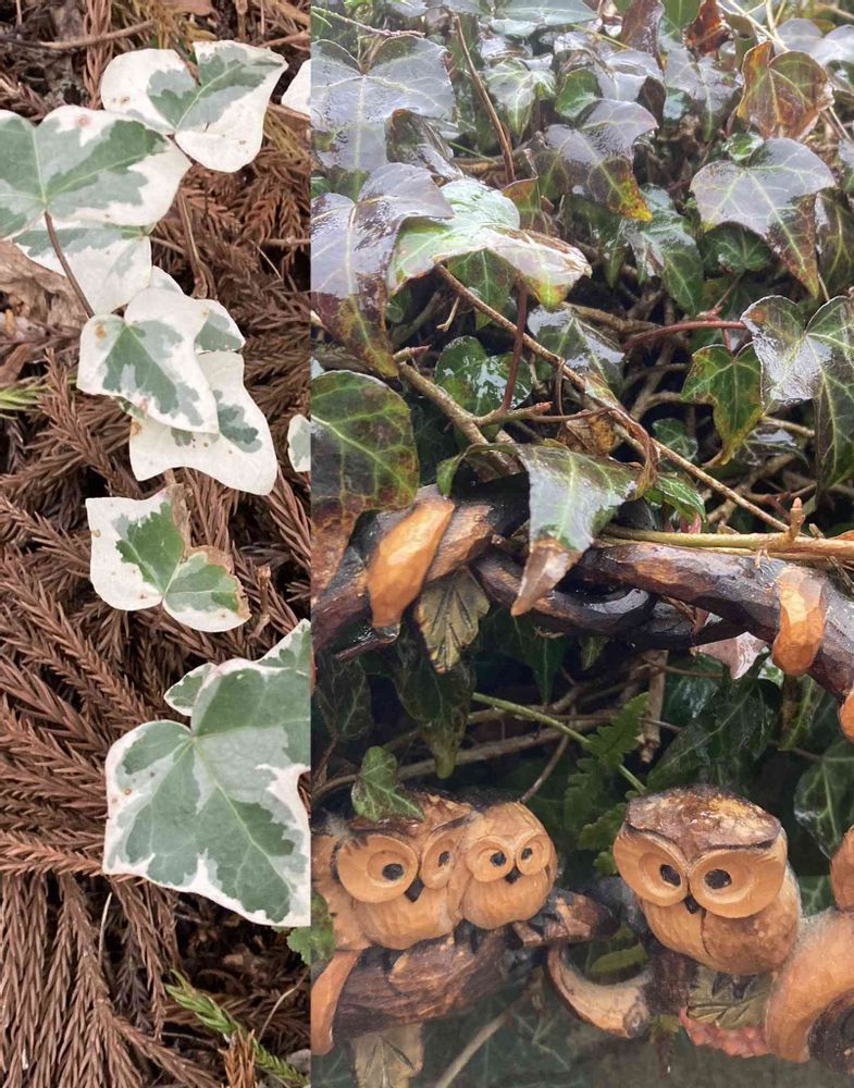 白い斑入りが爽やかね🩵フクロウちゃん私のアイビーと一緒に🎵雨が強くて工夫出来なかった😄☘️