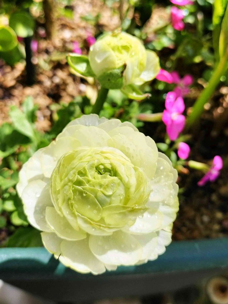 一昨年の球根からのラナンキュラスがようやく開花しました。なんとなく黄色だと思ってましたが、白でした。白は他にあんまり無いのでラッキー♪