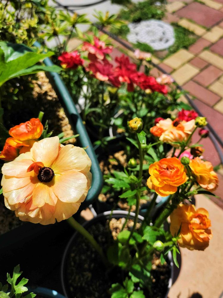 ラナンキュラス、年越しの球根から初めて咲いてくれました~わーい。