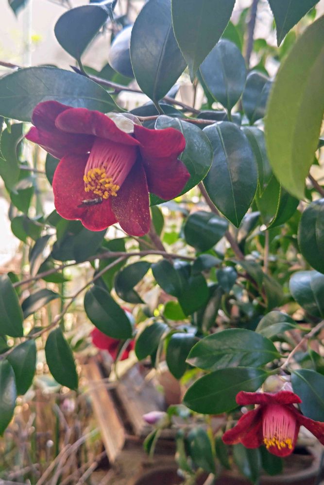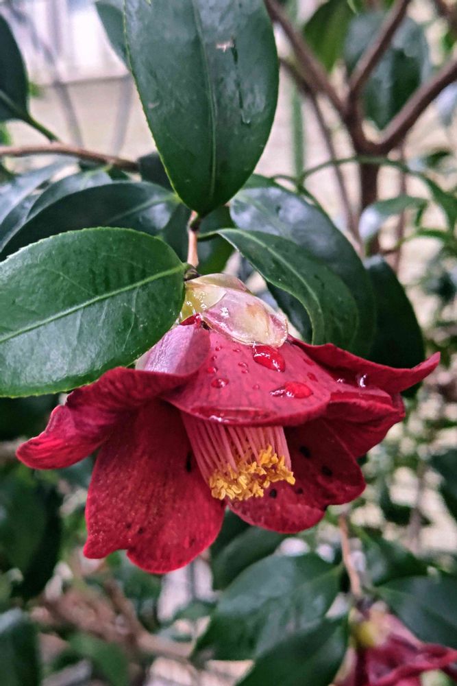 姿は藪椿と同じでも色が違うとまた違った魅力が、重厚感のある黒侘助も素敵✨