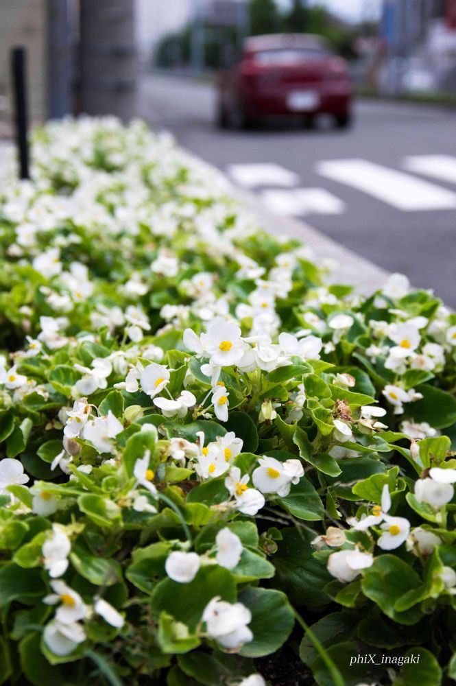 白いベゴニアの植え込みが綺麗でした。名古屋市中村公園駅付近にて。