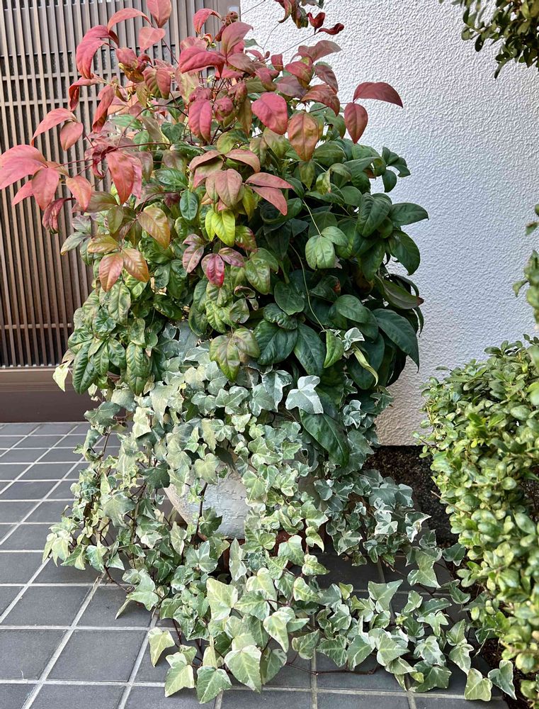 寄せ植えで使ったのが ヘデラだけはずーと絶えることなく居座ってます😅