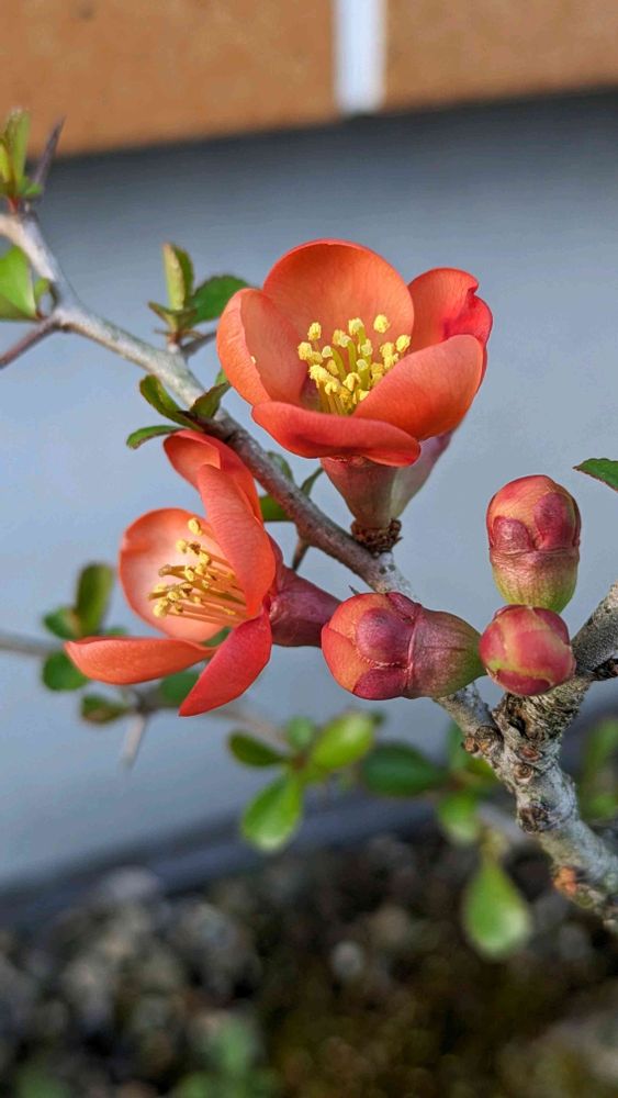 姉から紅梅だと言われ、譲り受けた木瓜。ちょっと色違いでイイ感じです😊