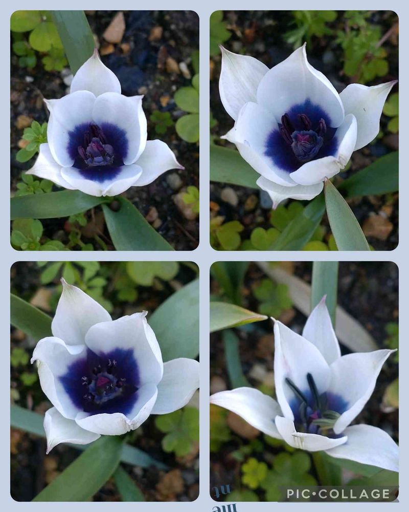 原種チューリップ🌷真っ白な中にパープルが入って素敵だね〜🤍🤍🤍🤍🤍💜🤍🤍🤍🤍🤍