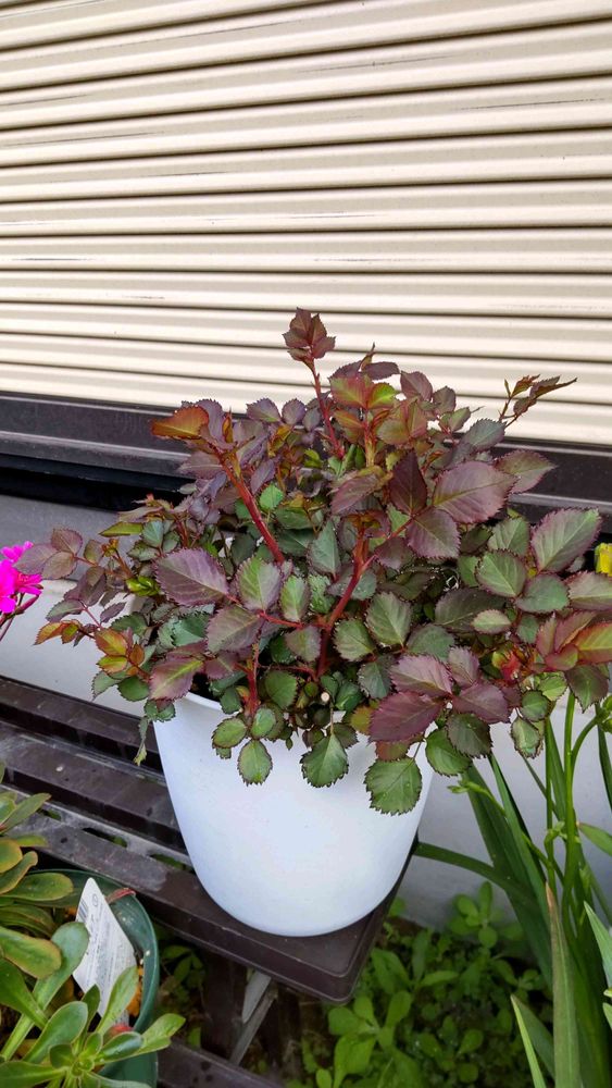バラさん元気に新芽🌱出してますね!これからどんなお手入れするのかしら?