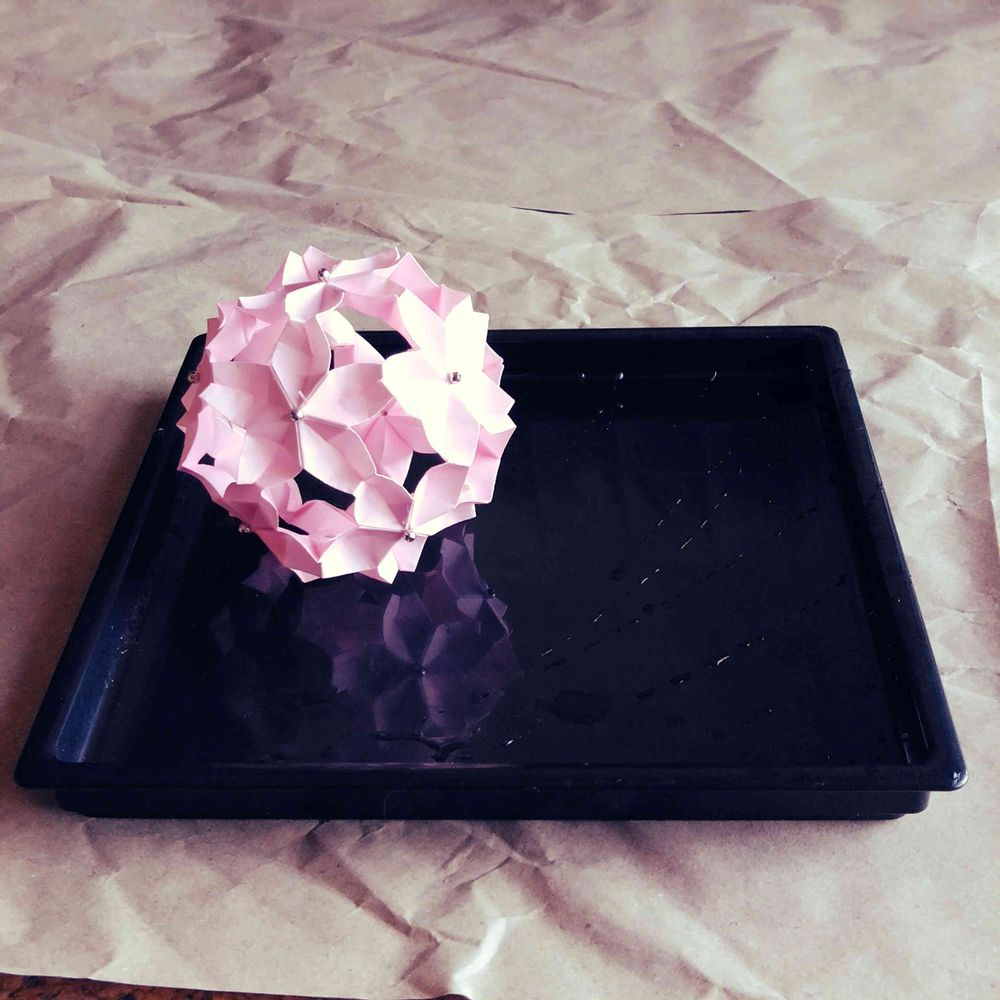 こんばんは。これは折り紙なんですか👀花びら繋がってるように見えます。