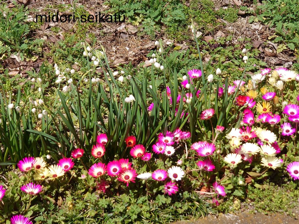 散歩中に見かけたリビングストンデージー、仲良く咲いてます。