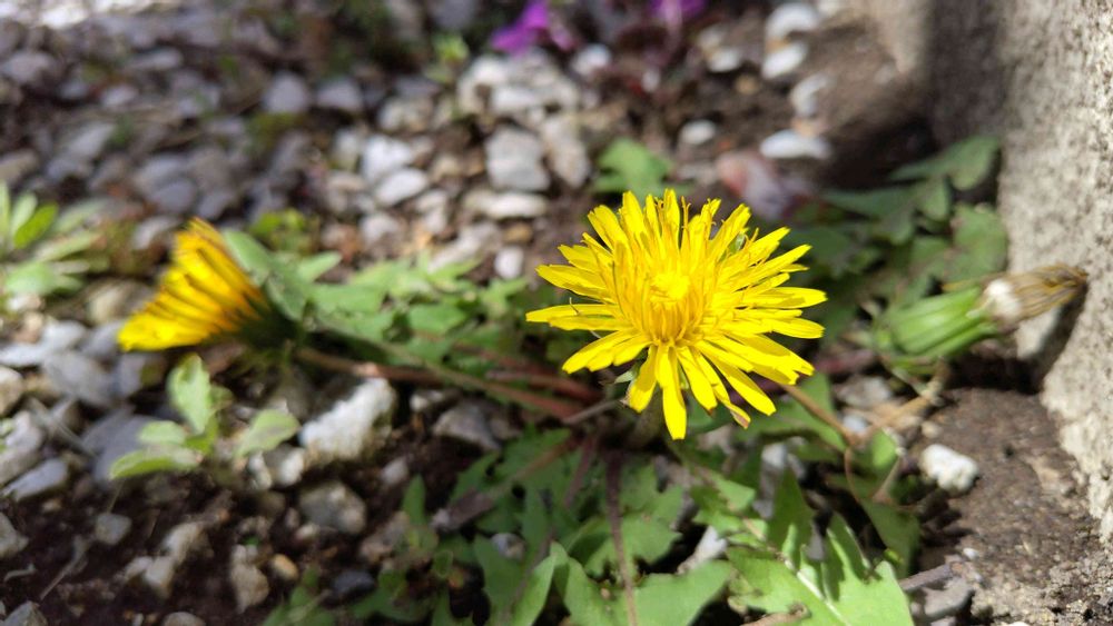 フイリゲンジスミレ。西洋たんぽぽ。カタバミ。