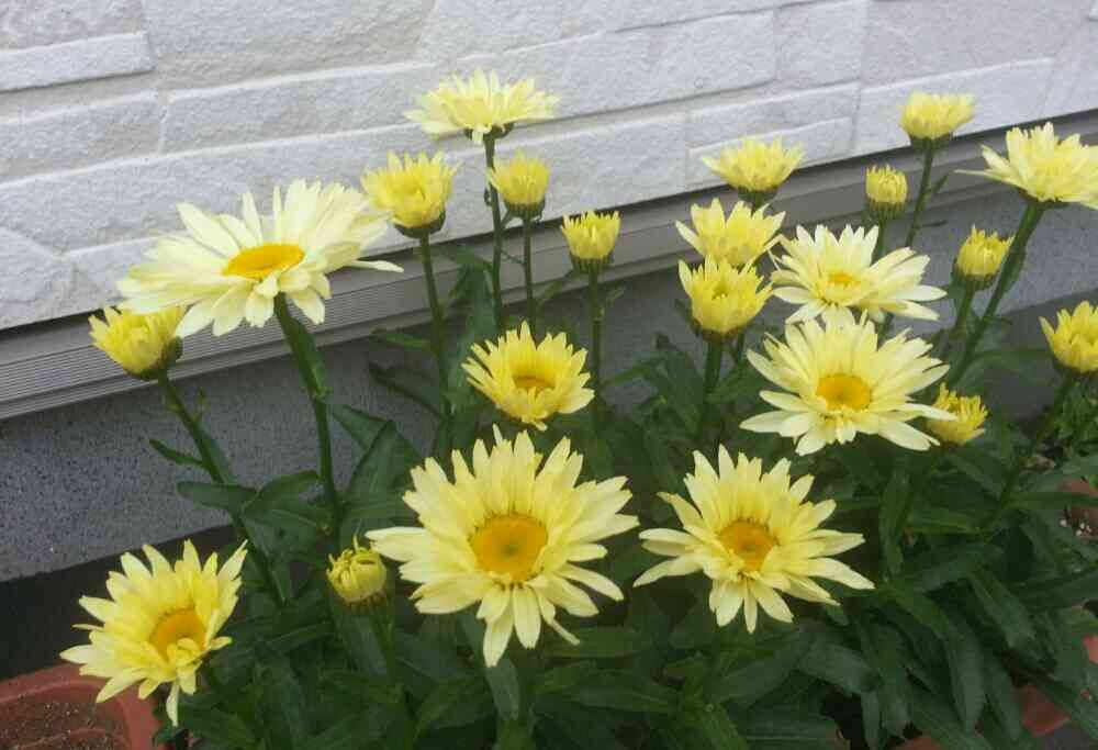 黄色のシャスターデイジーが咲きました。花がいっきに咲き出したのでやや小振りでしょうか。