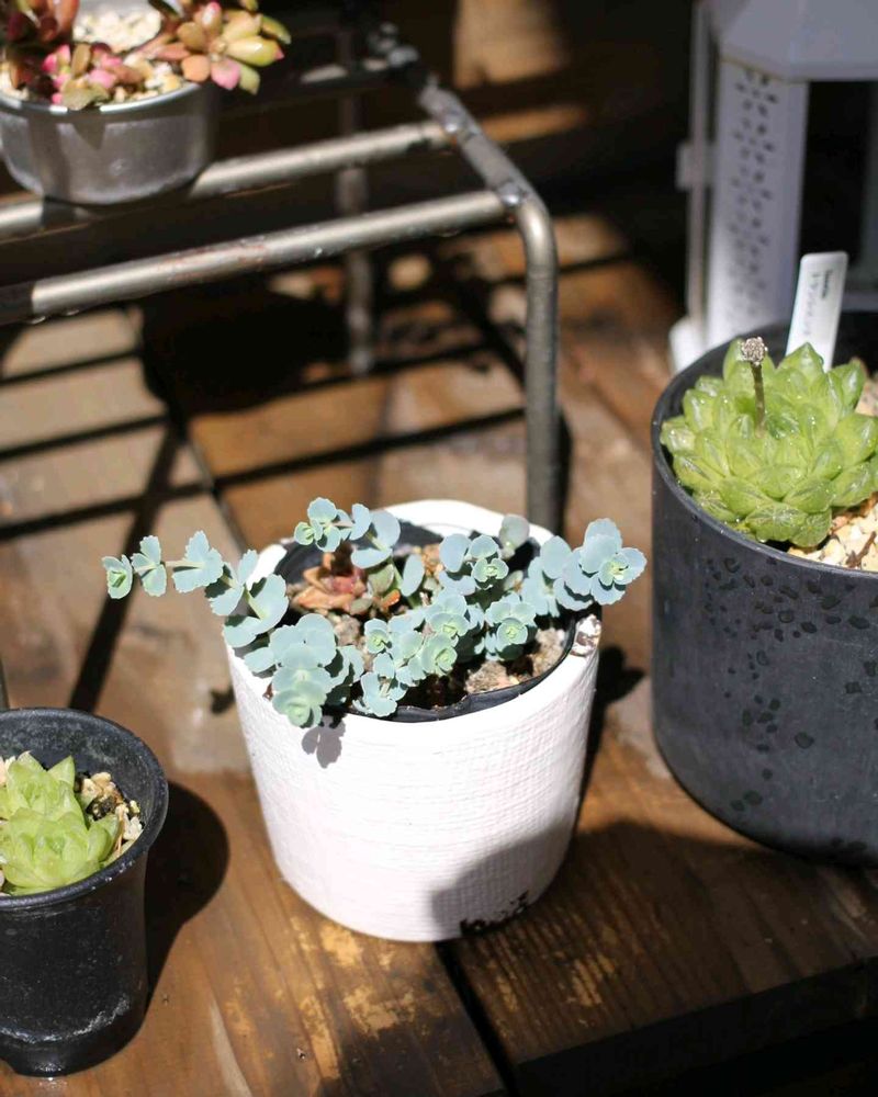 グリーンネックレスは結構水をやってるんだけど、いまいち元気がないなと思っていて、試しに土砂降りの日に雨ざらしの場所に置いておいたらプリップリになりました〜!