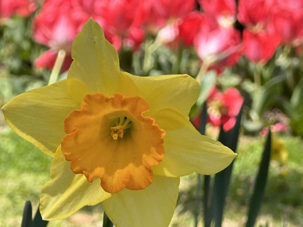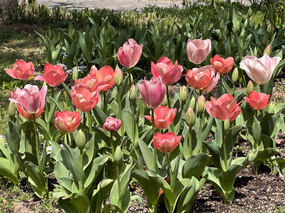 緑道脇の花壇のチューリップも全開です🌷