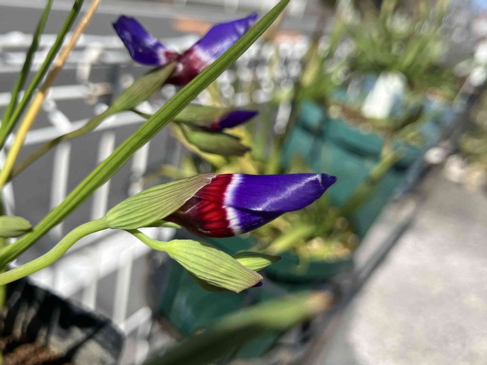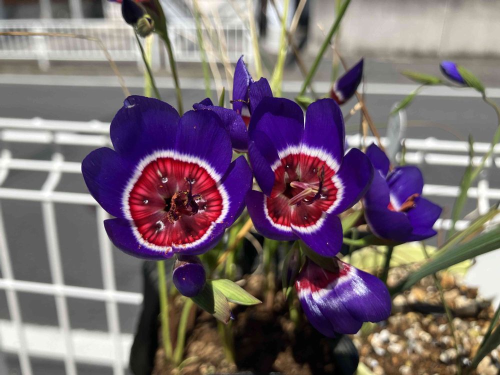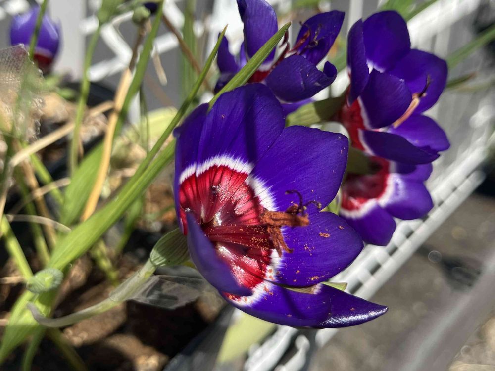 ゲイソリザ・ラディアンス咲きました♪箱根湿性花園で売ってた苗です🌱ものすごいコントラストで非常に目立ちます🍷