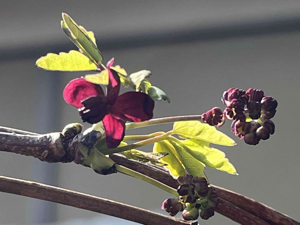 アケビの花が咲く時期なんですね。早速、散歩に行ってみよ🤭