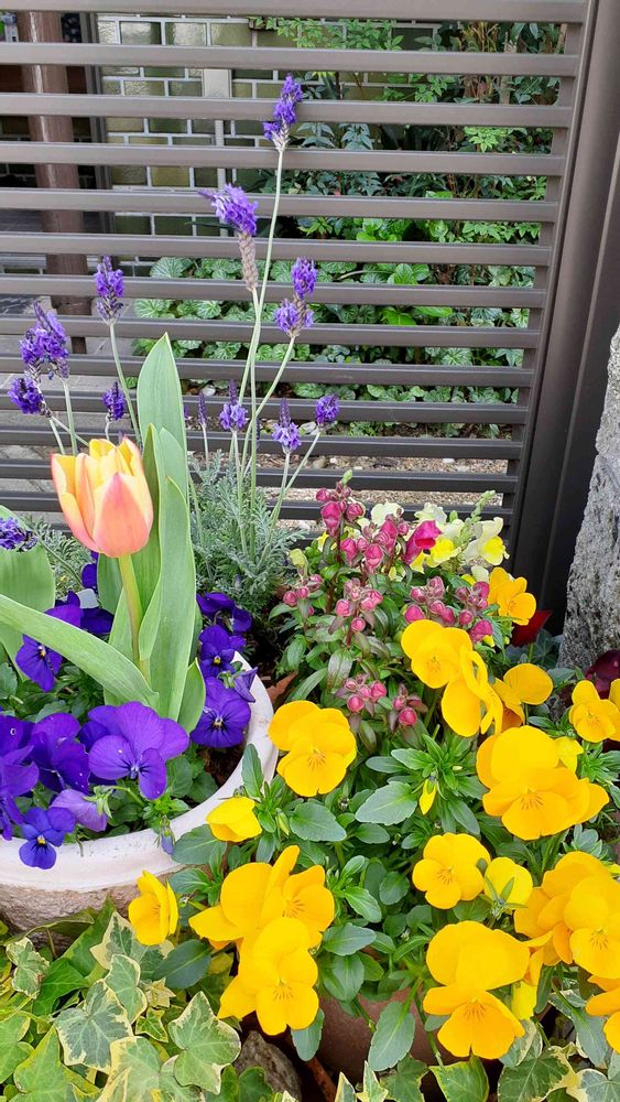 [ビオラ・キンギョソウ・チューリップ・ラベンダー・アイビー(ヘデラ)]